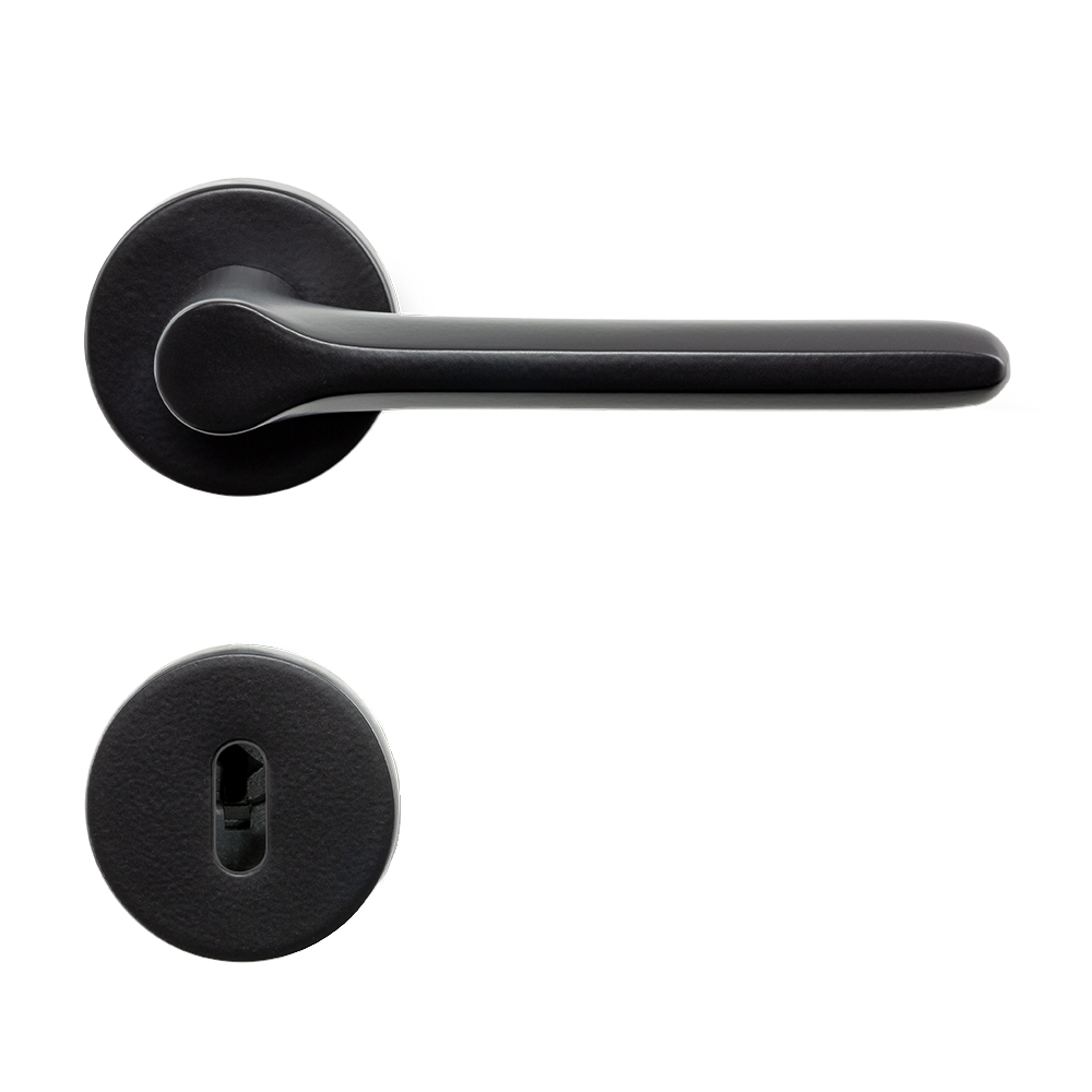 Håndtaket er tilgjengelig i to forskjellige design, matt sort og i rustfritt stål. Dørhåndtaket og nøkkelhullet passer til dører som er 35-48 mm dype. Dørhåndtaket er tilpasset europeiske standarder. Standard nøkkelplate, konverteringssett og komplett monteringssett er inkludert.