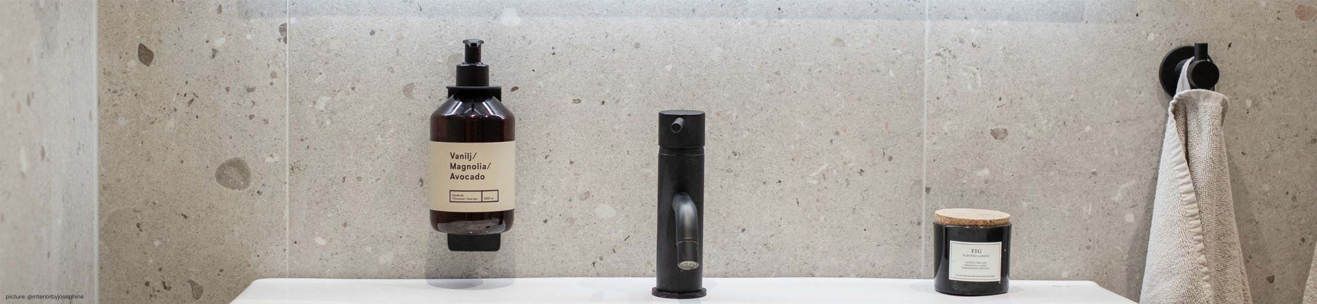 Våre såpedispenser finnes i ulike materialer og farger slik at du enkelt kan matche interiørdesignet ditt på badet. Toalettrullholder, baderomshyller, håndkleholder & toalettbørster finnes i samme serie slik at du enkelt kan matche innredningen din på badet og få en fin helhetlig look med små detaljer!