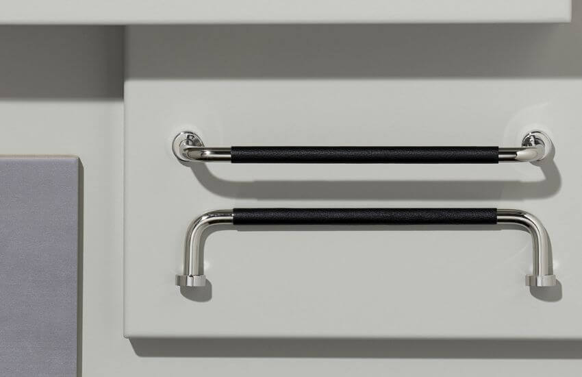 Lær er ikke bare et robust og slitesterkt materiale, det gir også en følelse av luksus. Lærhåndtak blir bare vakrere med tiden og utvikler en unik patina som gjør hvert håndtak unikt. Vi har håndtak i rent lær, men også lærbelagte og lærinnsvøpte håndtak der du får en vakker kontrast mellom ulike materialer. En stor fordel med lærhåndtak er at de gir en myk og behagelig følelse når du åpner skapene og skuffene dine. Oppsummert kombinerer skinnhåndtak estetikk, holdbarhet og en unik karakter, noe som gjør dem til et utmerket valg for deg som søker høykvalitets og stilig innredning.Skinnhåndtak av høyeste kvalitet