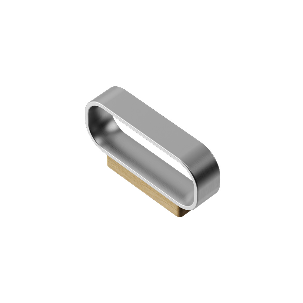 Håndtak Race har et rent og minimalistisk design, som samtidig tilfører en spennende kontrast i både form og stil. Med en tynn ring av sink som møter en skarp geometrisk profil, skaper Race en unik kontrast til den myke trebunnen.