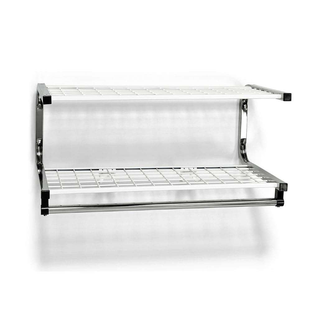 Denne klassiske hattestativet i nikkel er en tidløs og funksjonell løsning for deg som ønsker orden i gangen uten å gå på kompromiss med verken design eller kvalitet. Med hvitlakkert hylle i slitesterkt stålgitter og detaljer i forniklet metall, kombinerer den et stilrent uttrykk med praktisk funksjonalitet. De elegant buede konsollene gir hattestativet et lett og luftig preg, samtidig som den nedre stangen gir plass til kleshengere – perfekt for jakker, kåper og andre ytterplagg. Hyllen har god plass til luer, vesker eller andre hverdagslige nødvendigheter som du vil ha lett tilgjengelig.