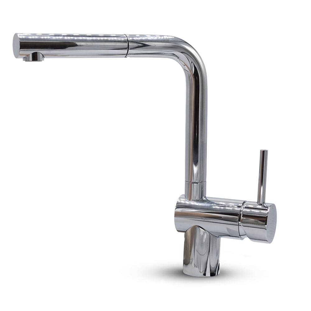 Moderne L-formet design. Tutens bevegelse er begrenset til en vinkel på 160 grader. Tutens uttrekkbare munnstykke er elegant integrert i tuten med et stilrent design. Dette gjør modellen mer praktisk og anvendelig når det gjelder å skylle av gjenstander eller fylle kjeler og kar med vann.