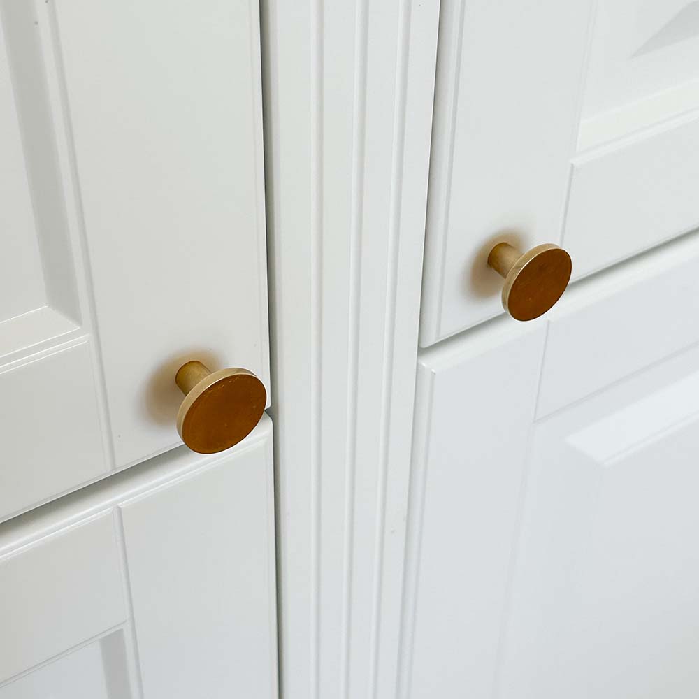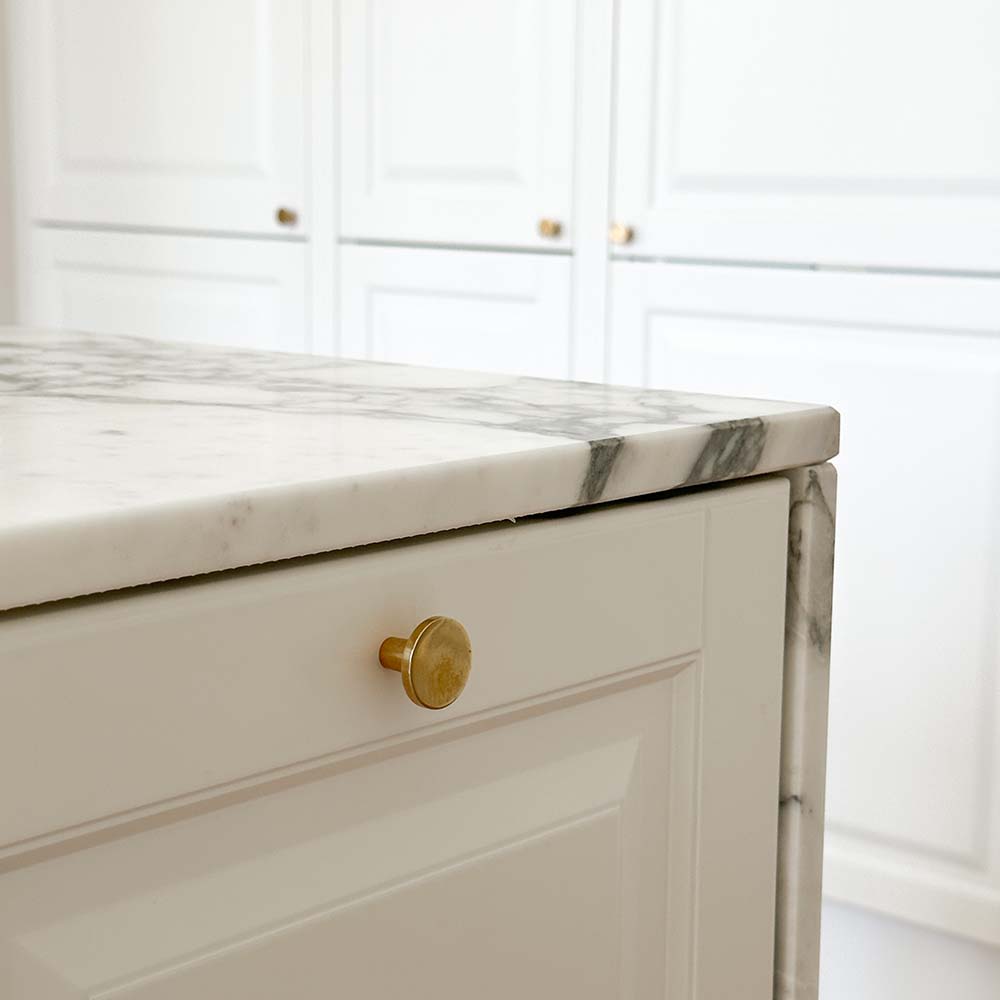 Knob Dalby er en trendy knott i massiv messing. Dalby er tilgjengelig i tre utførelser, polert kobber, polert messing og ubehandlet polert messing. Det er en knott som passer til det moderne kjøkkenet, på badet eller som en knott på et skrivebord eller kommode.