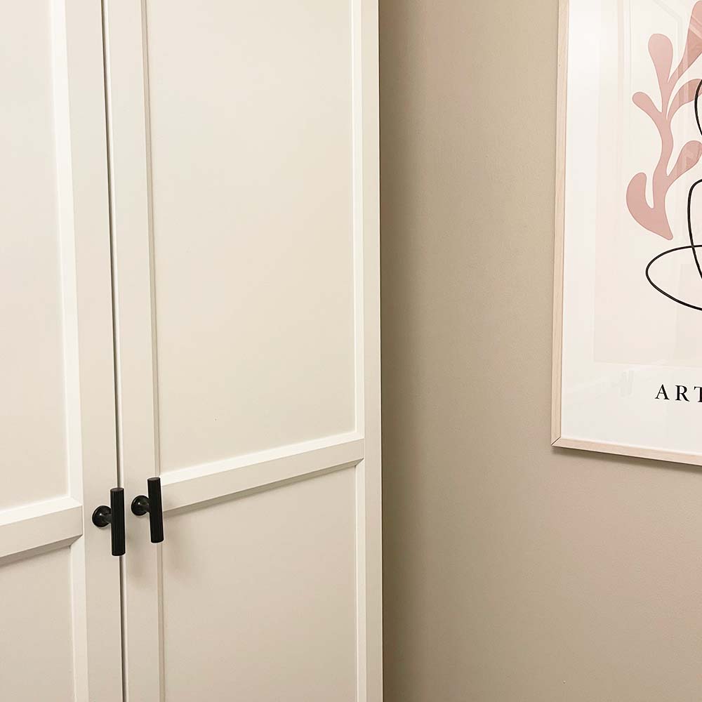 Knott Portland i matt svart fra Beslag Design. Portland er en ribbet knott med en unik T-formet design som gir et godt grep og et vakkert utseende. Knotten passer like bra på kjøkkenet som på badet, match gjerne med håndtakene våre i samme serie.