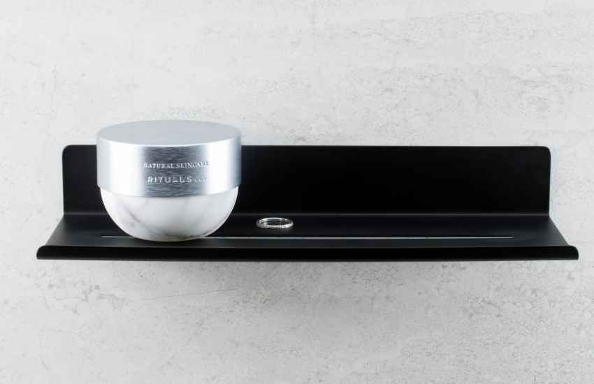 Vi forstår viktigheten av enkel installasjon, spesielt når det gjelder bad hvor man ønsker å unngå boring. Våre baderomshyller er selvklebende med 3M-teip på baksiden. Følg trinnene nedenfor for en enkel og smidig montering: