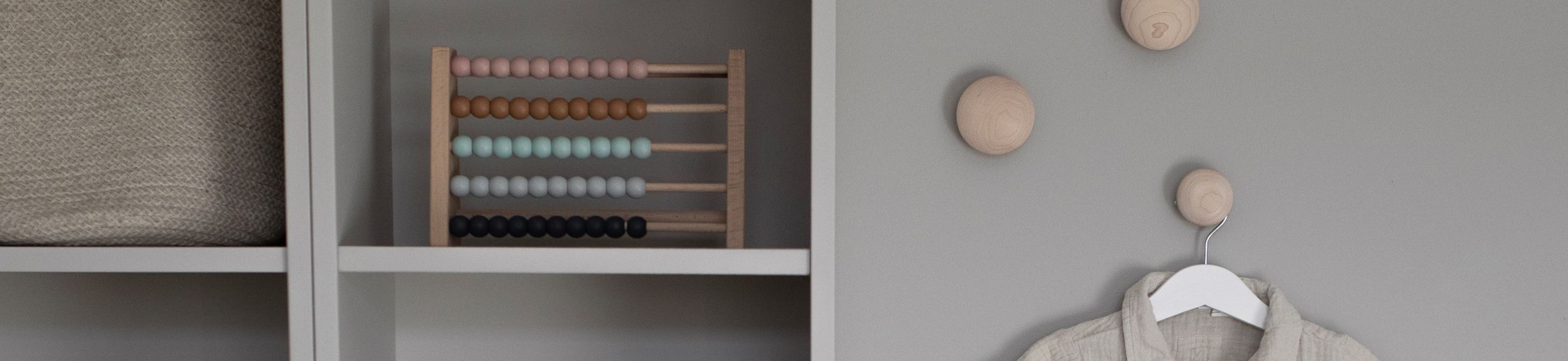 Her finner du et bredt utvalg av knagger og knotter til barnerommet. Vi har barneknagger og barneknotter i ulike materialer og farger, som grønt og rosa eller helt i tre. Du finner enkelt en knagg eller knott som passer inn i barnets rom og innredning. Ønsker du å enkelt kunne holde orden på barnerommet, kan vi råde deg til å sette opp flere forskjellige veggkroker slik at barnet enkelt kan henge opp klærne, lekene og sekken. Barneknagger er både en stilig interiørdetalj men også en praktisk oppbevaringsløsning!