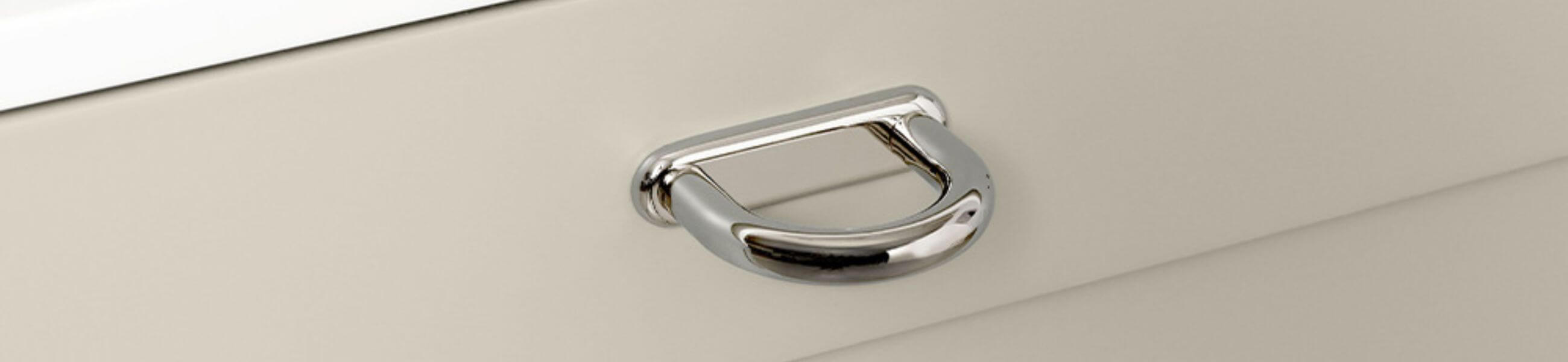 Forkrommet med lærsvepning/lærolindning: Disse håndtakene tilbyr en unik kombinasjon av metall og lær, noe som gir en luksuriøs følelse. De finnes i forskjellige farger på læret og passer perfekt for kjøkken der man ønsker en mer personlig og eksklusiv touch.