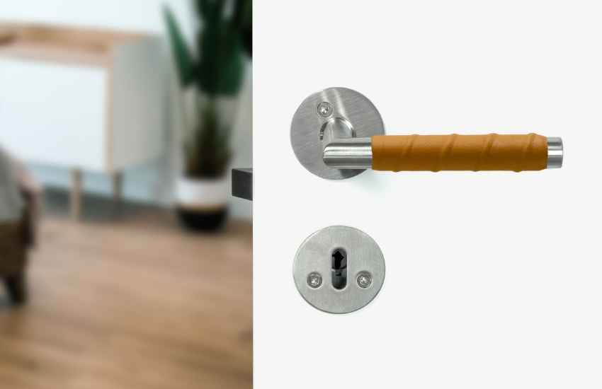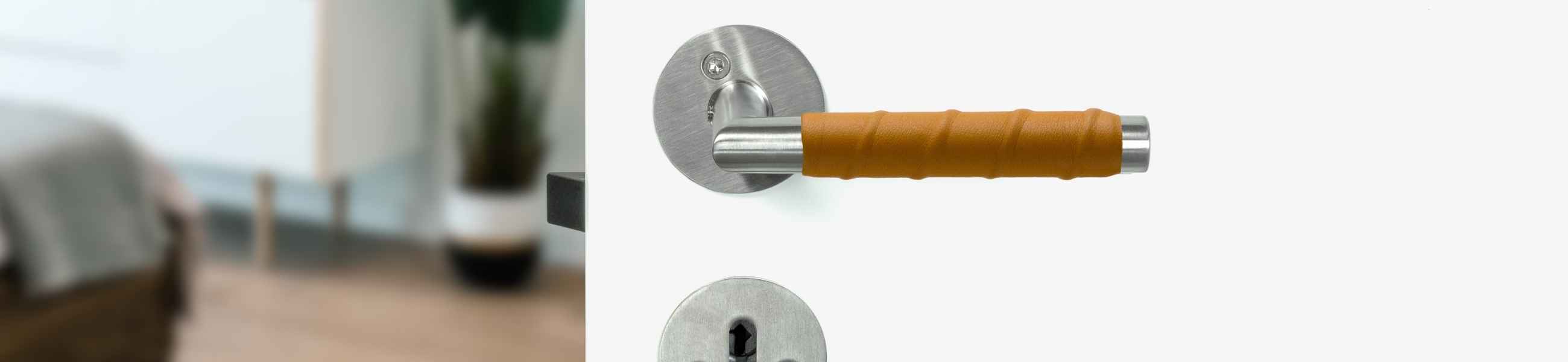 Her finner du dørhåndtak til innerdører med rustfritt stålunderstell pakket inn i miljøvennlig naturgarvet lær fra Tärnsjö Garveri. Våre skinnkledde dørhåndtak passer til innerdører og leveres komplett med tilhørende skruer og monteringssett. Med skinnkledde dørhåndtak kan du skape en følelse av luksus og eksklusivitet. Læret gir en varm og innbydende følelse samtidig som det gir en fin kontrast til andre materialer i rommet. Det er en perfekt balanse mellom tradisjon og modernitet. Fordelen med lærkledde dørhåndtak er at de ikke bare er estetisk tiltalende, men også behagelige å bruke. Læret gir et godt grep og føles behagelig å holde i hver gang du åpner eller lukker døren.